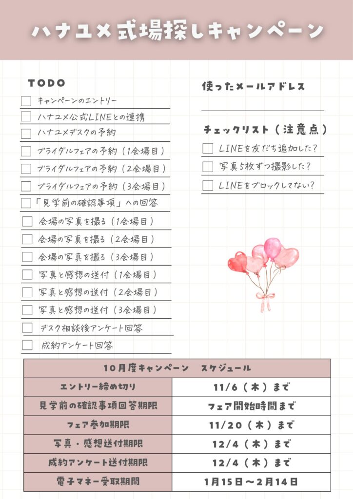 ハナユメで実施しているキャンペーン・イベントは以下の通りです。↓