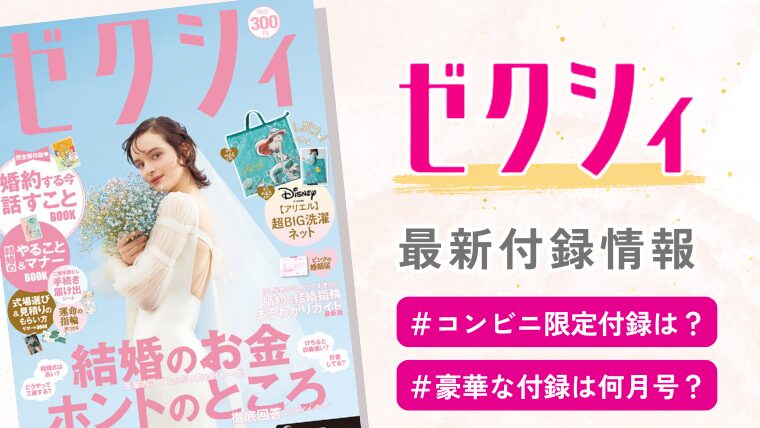 そこでこの記事では、ゼクシィ最新号の付録レポをはじめ、来月号の付録の紹介や「豪華付録がつきやすい月」について詳しく紹介します。
