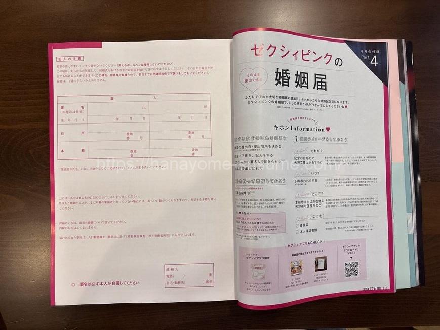 ピンクの婚姻届はゼクシィの雑誌内についているので、切り離して使ってくださいね。