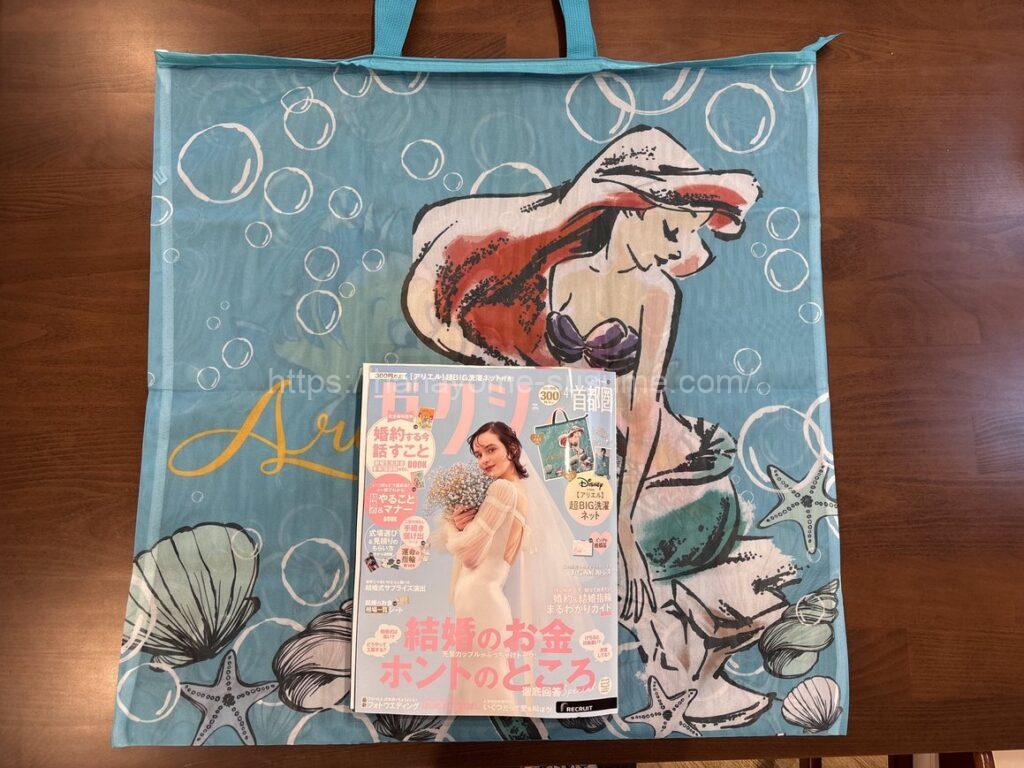 今月号の付録は、ディズニーの人気キャラクター・アリエルの超BIG洗濯ネット!