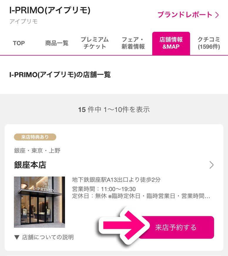 無事にエントリー完了したら、気になるジュエリーショップの来店予約をしましょう。