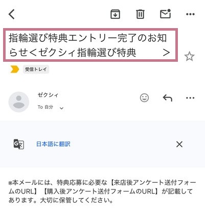 次に、同じくエントリー完了メール内に記載されている「購入後アンケートフォームURL」をクリックし、購入した指輪の「購入証明書類」のアップロードをします。